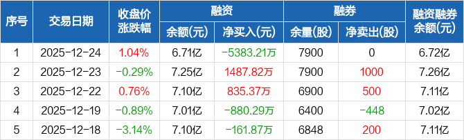 中科蓝讯:融资净偿还5383.21万元,融资余额6.71亿元(12-24)