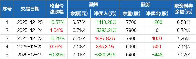 中科蓝讯:融资净偿还1410.28万元,融资余额6.57亿元(12-25)