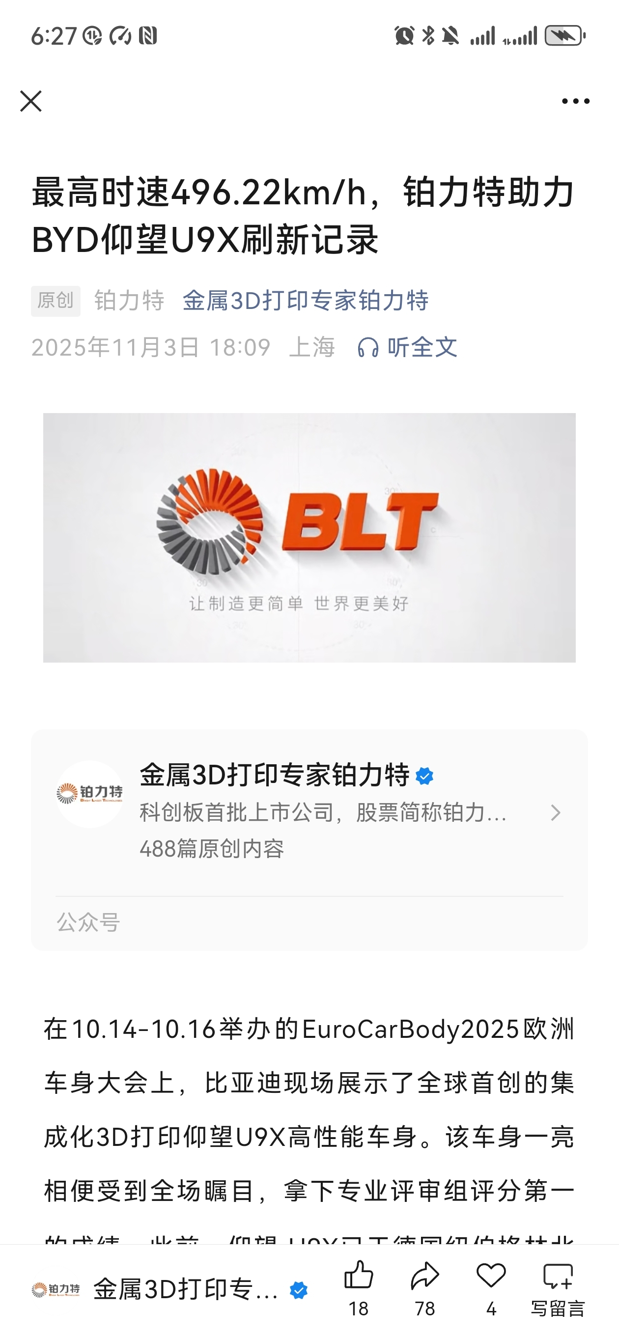 $铂力特(SH688333)$