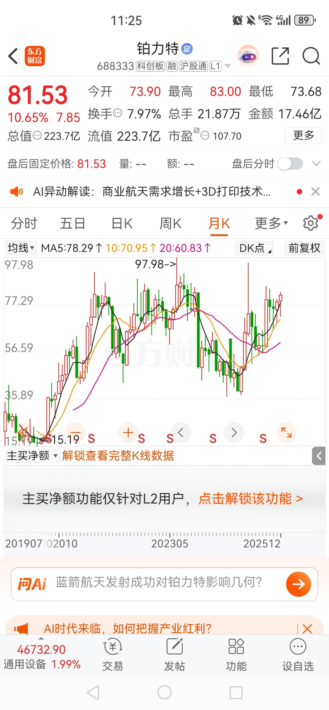 $铂力特(SH688333)$ 今时不同往日,商业航天大爆发,天时地利人和,必将突破曾经的最高点98,未来200指日可待!