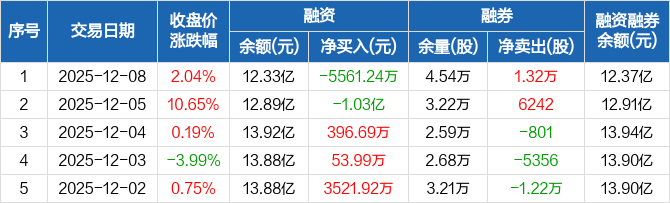 铂力特:融资净偿还5561.24万元,融资余额12.33亿元(12-08)