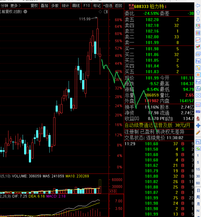 1月5日周一铂力特预测低开百分之十,收盘负百分之十五