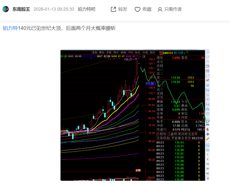 铂力特140元已见世纪大顶,后面两个月腰斩春节前见70以下。