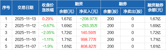 西高院:融资净偿还208.97万元,融资余额1.67亿元(11-13)