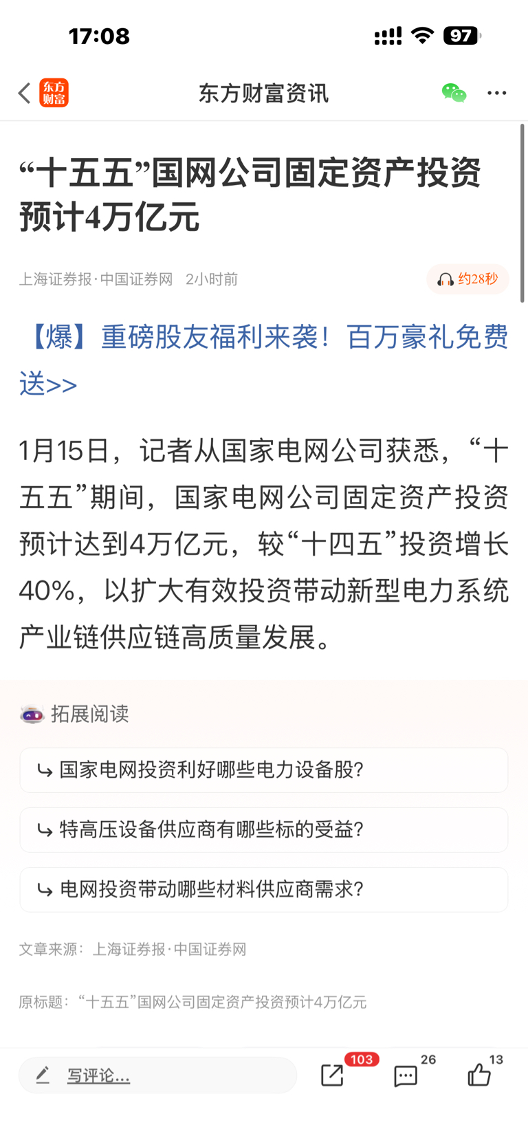 $西高院(SH688334)$ 测算结果:西高院“十五五”期间来自国网相关的检测营收约72亿-320亿元(5年合计),年均约14.4亿-64亿元。或多或少会跟着西电祖师爷涨一点,西电年涨近50%,西高年涨近8%,差太多。在加厦门分公司新能源及国际脚步海外收入,高院稳中有进。