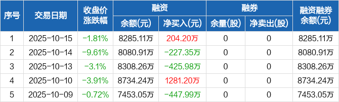 复洁环保:融资净买入204.2万元,融资余额8285.11万元(10-15)
