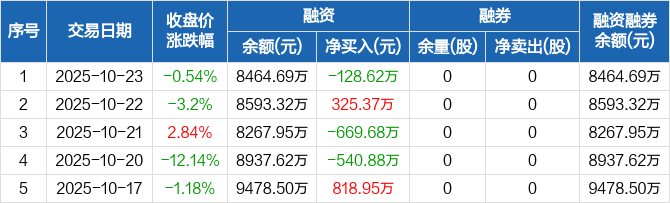 复洁环保:融资净偿还128.62万元,融资余额8464.69万元(10-23)
