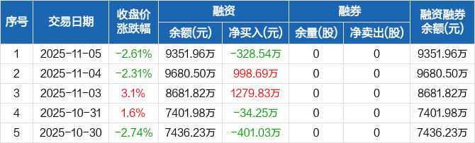 复洁环保:融资净偿还328.54万元,融资余额9351.96万元(11-05)