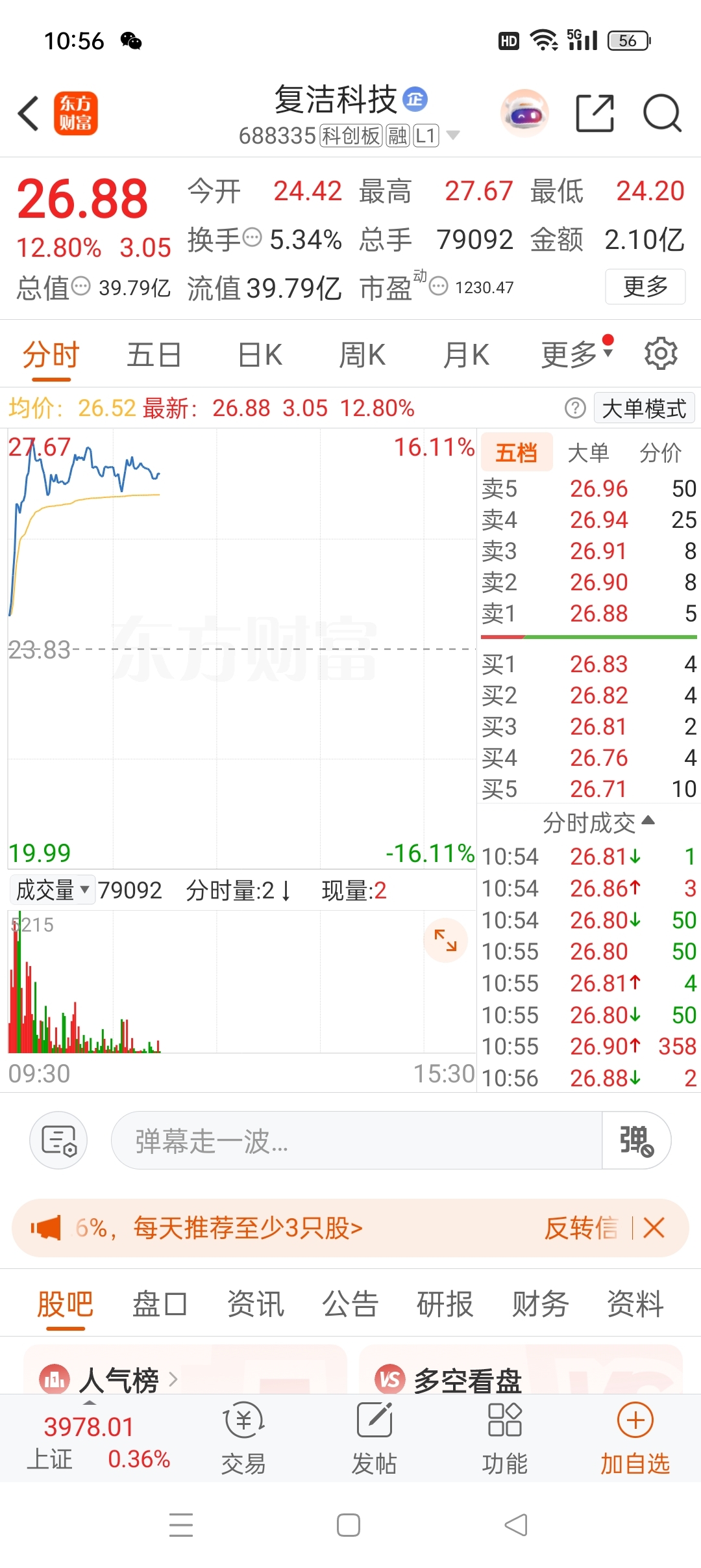 $复洁科技(SH688335)$ 我20.4把你割了你今天给我涨12个点。好的很