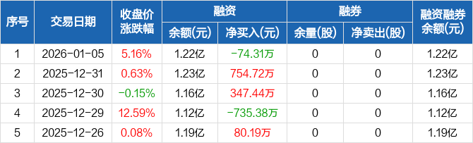 复洁科技:融资净偿还74.31万元,融资余额1.22亿元(01-05)
