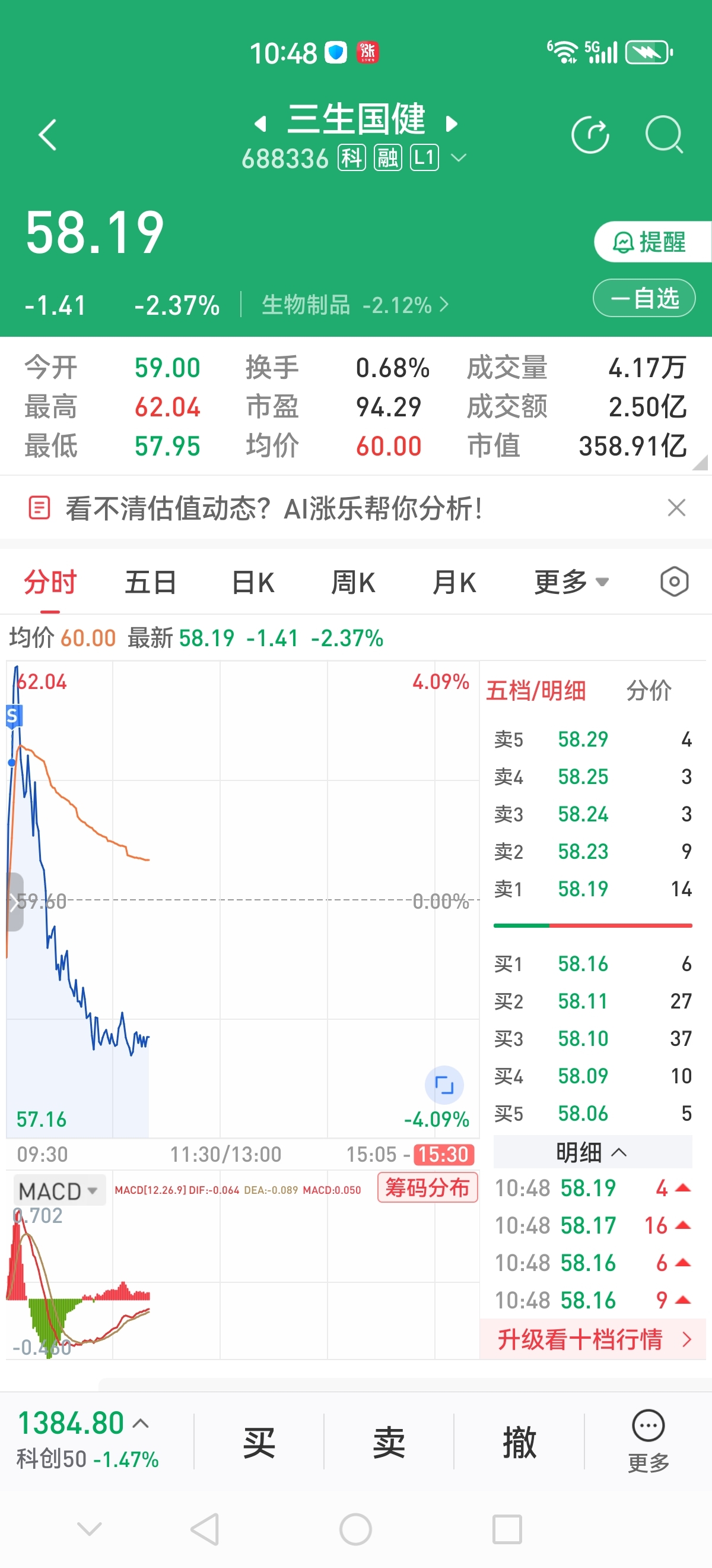 $三生国健(SH688336)$ 就知道今天有人会买进去博业绩,预判了韭菜的预判,昨天收盘竞价买,两个点就跑路,看看尾盘有没有机会,业绩明牌的其实也没啥好看的