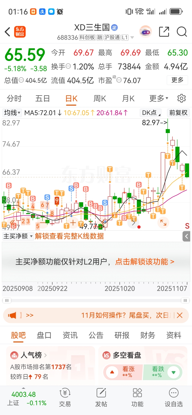 $XD三生国(SH688336)$ 这架势是要回到起涨的节奏吗