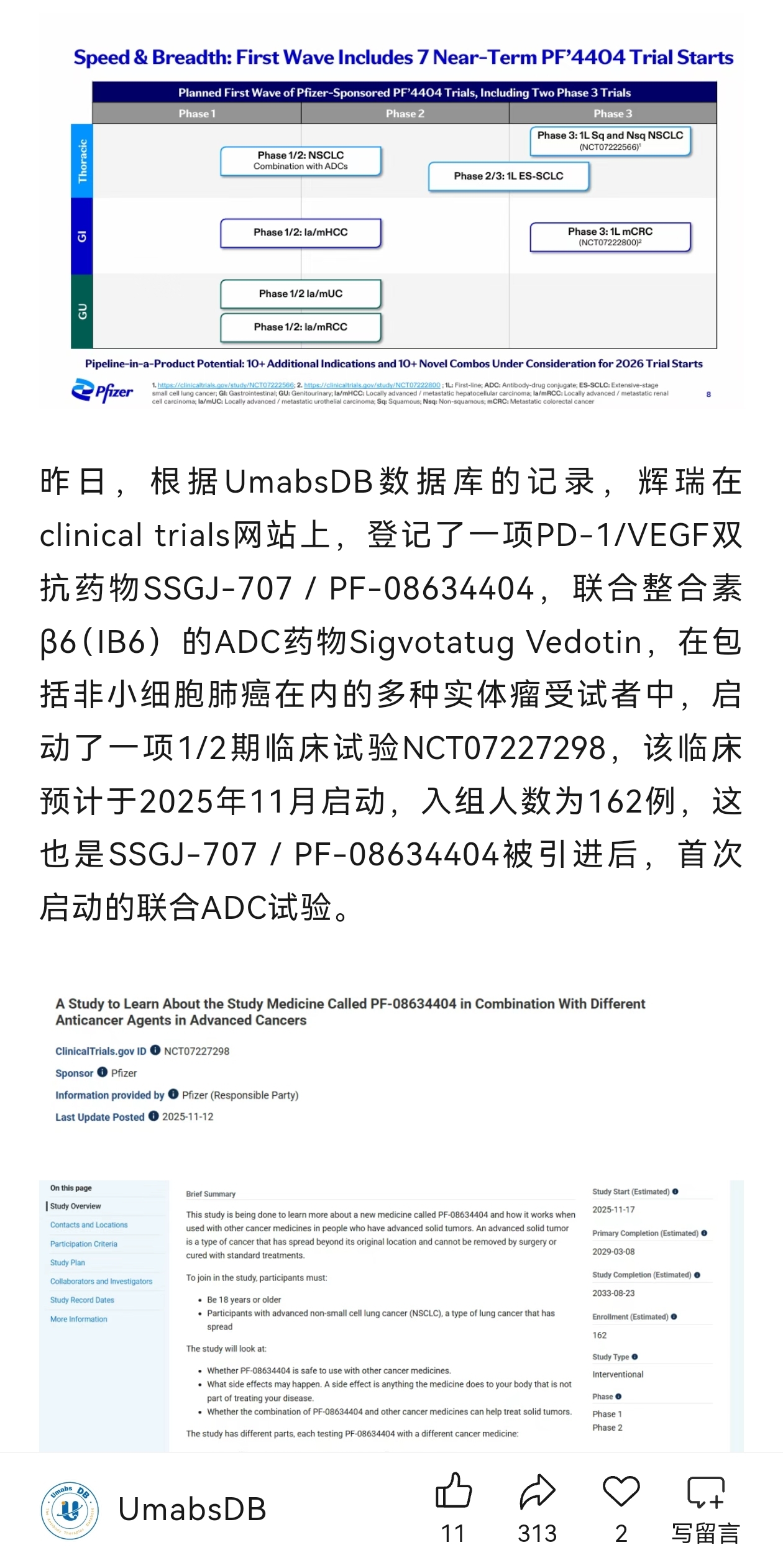 $三生国健(SH688336)$ #三生国健##三生制药# SSGJ-707 / PF-08634404被引进后,辉瑞首次启动的联合ADC试验
