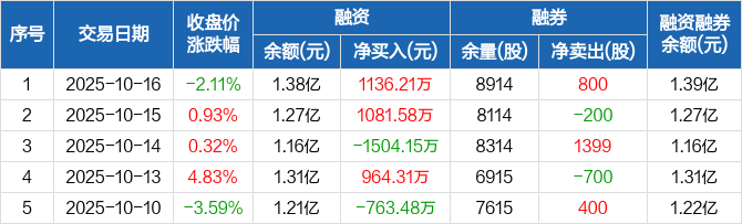 普源精电:融资净买入1136.21万元,融资余额1.38亿元(10-16)