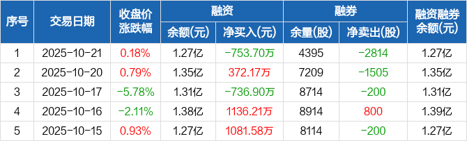 普源精电:融资净偿还753.7万元,融资余额1.27亿元(10-21)