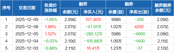 普源精电:融资净买入157.36万元,融资余额2.09亿元(12-09)