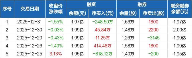 普源精电:融资净偿还248.5万元,融资余额1.97亿元(12-31)