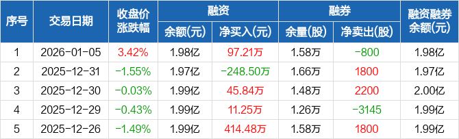 普源精电:融资净买入97.21万元,融资余额1.98亿元(01-05)