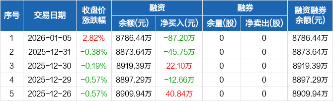 赛科希德:融资净偿还87.2万元,融资余额8786.44万元(01-05)