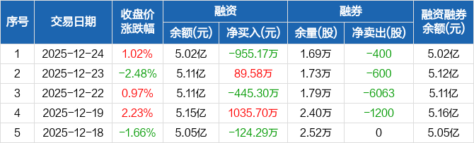 亿华通:融资净偿还955.17万元,融资余额5.02亿元(12-24)