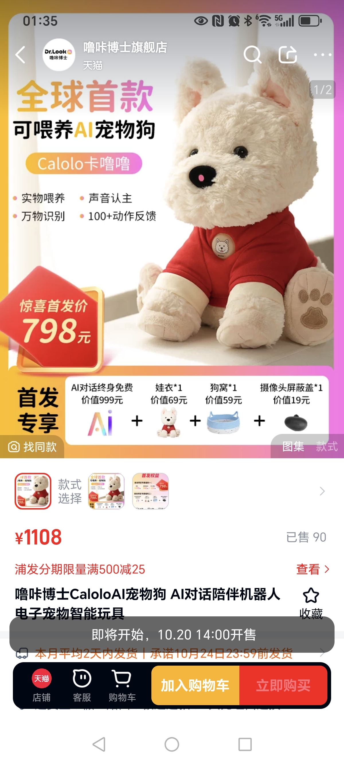 798元的ai宠物狗可以买一个给小孩玩,10月20号开售,之前买的ai拍学机还可