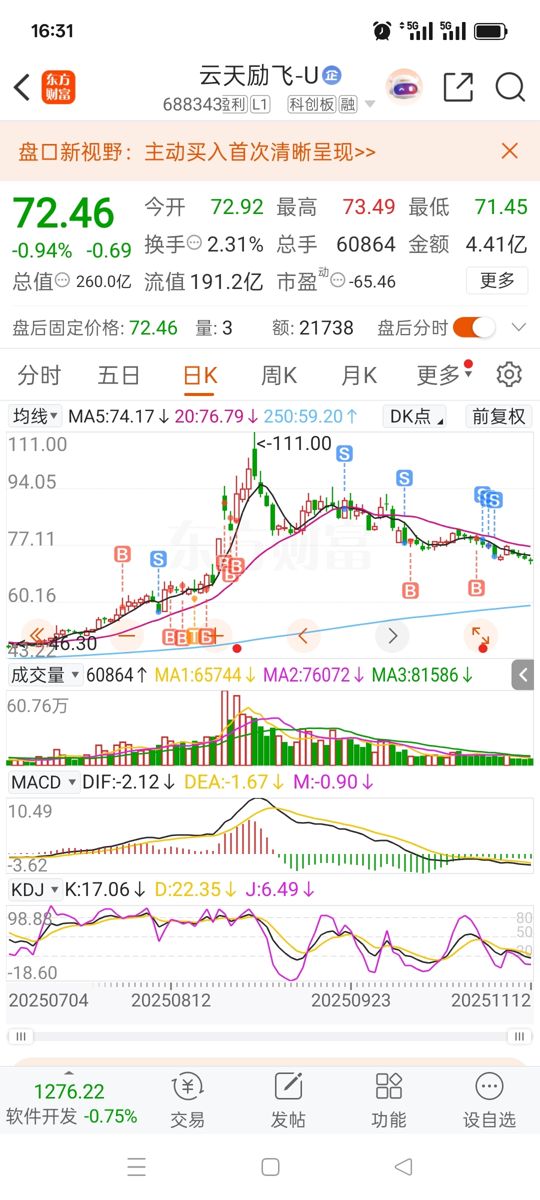 $云天励飞-U(SH688343)$ 本来跟随趋势赚了接近40个点,结果没看清现实,和股票谈恋爱,与趋势为敌,结果亏了10个点出来了