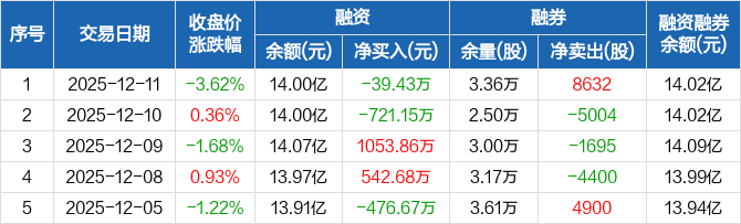 云天励飞:融资净偿还39.43万元,融资余额14亿元(12-11)