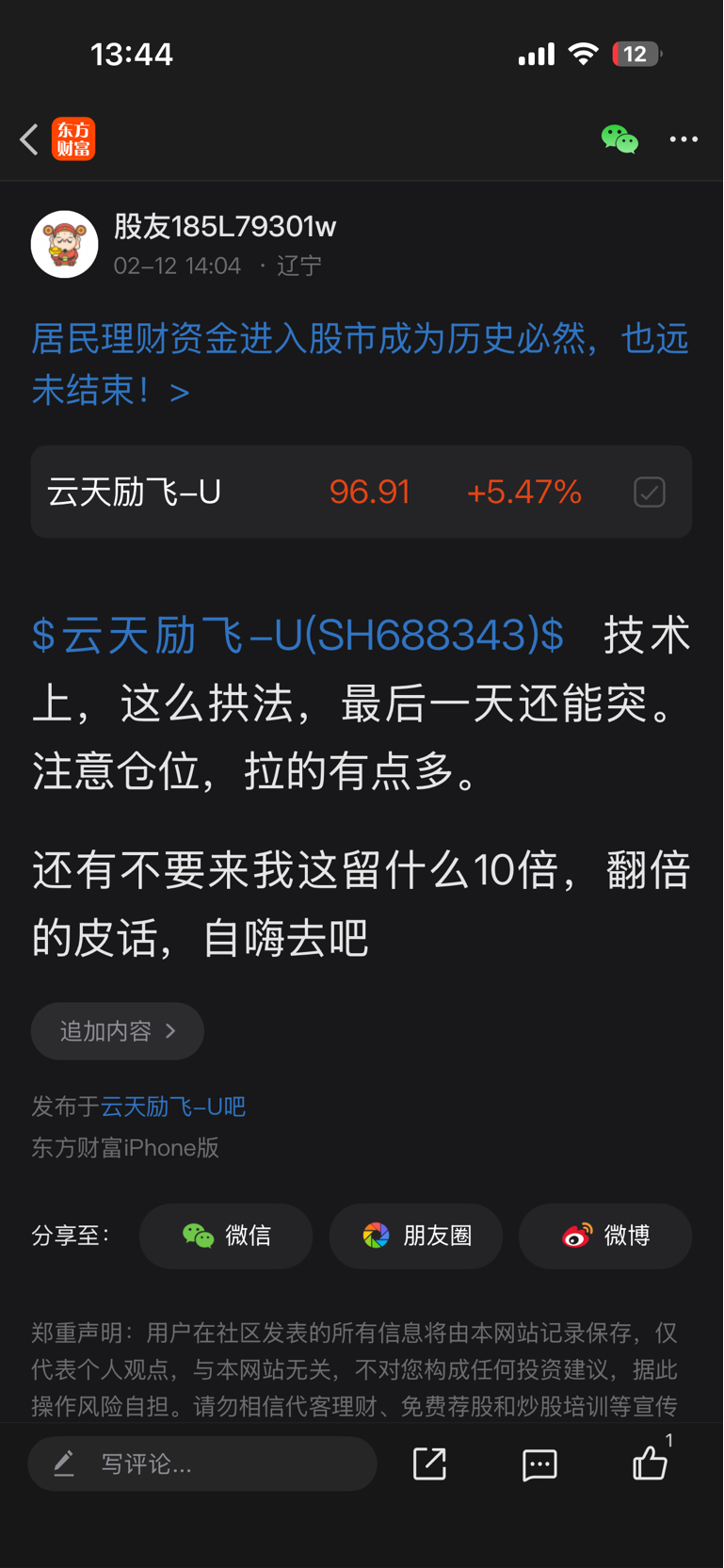 温馨提示: 1.根据《证券法》规定,禁止编造、传播虚假信息或者误导性信息,扰乱证券市场;2.用户在本社区发表的所有资料、言论等仅代表个人观点,与本网站立场无关,不对您构成任何投资建议。用户应基于自己的独立判断,自行决定证券投资并承担相应风险。《东方财富社区管理规定》