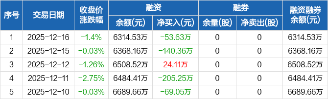博力威:融资净偿还53.63万元,融资余额6314.53万元(12-16)