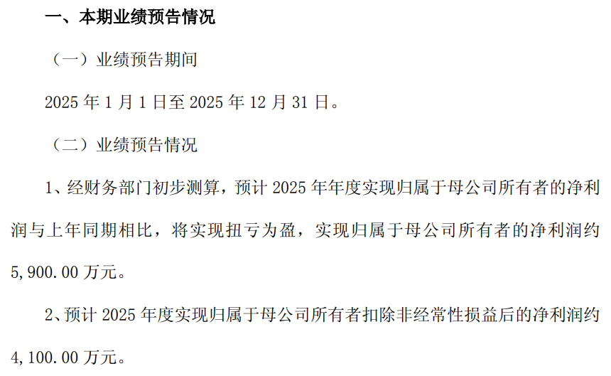 公司预计2025年扭亏为盈