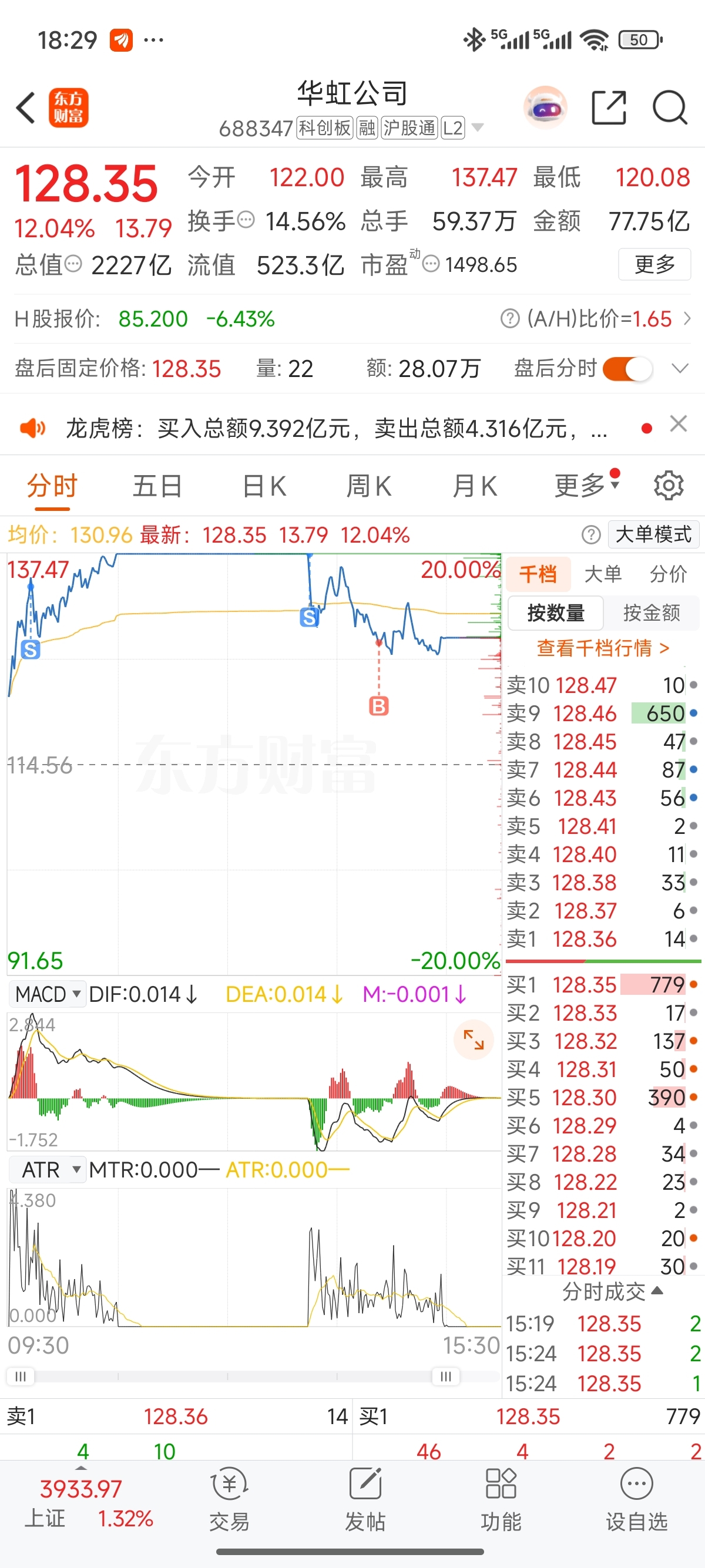 $华虹公司(SH688347)$ 好在涨停后设置了开板卖出条件单,冲高逃顶,不幸的是忘记撤销早上做T的买单了,虽然当天没有亏,但明天低开这一棒槌是免不了要挨了