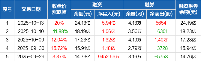 华虹公司:融资余额24.13亿元,创历史新高(10-13)
