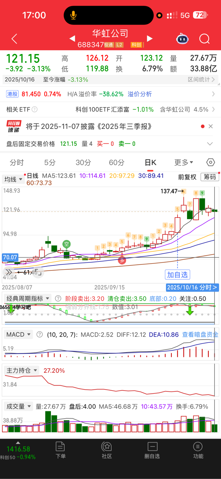 $华虹公司(SH688347)$ 121.15最近波段的最低点,马上要引领光刻机新的行情