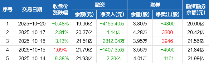 华虹公司:连续5日融资净偿还累计4.17亿元(10-20)