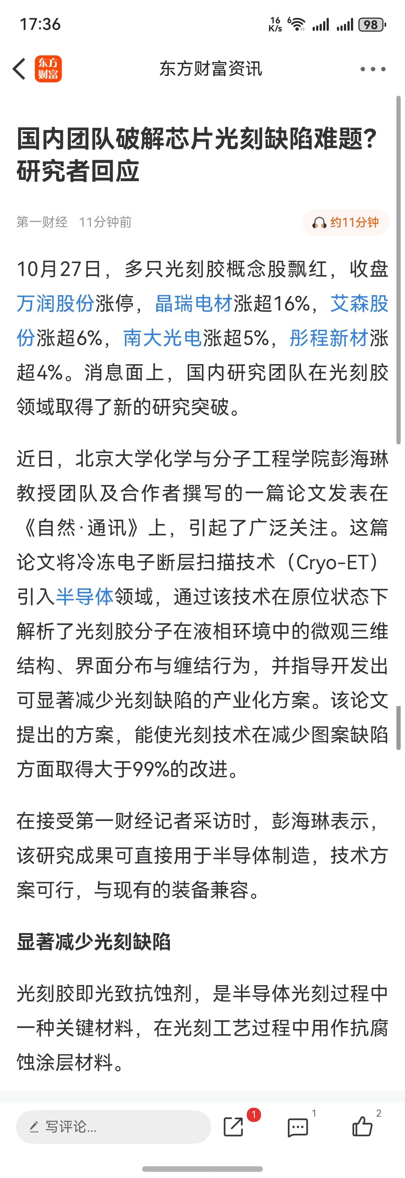 又重新看了看这个新闻,这利好的根本就不是光刻胶啊,这个是利用现有的设备和材料,用