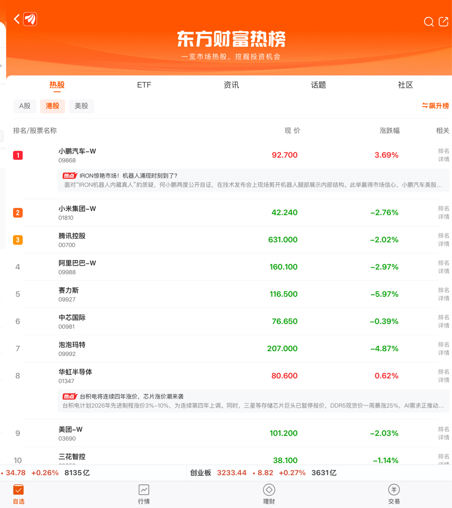 港股热度前十都是科技,说明外资都看好中国科技。今天只有小鹏和华虹是红的。春来我不先开口,哪个虫儿敢作声?