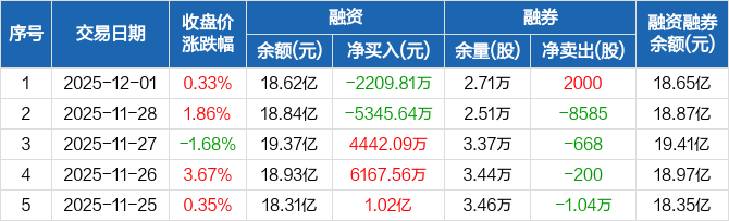 华虹公司:融资净偿还2209.81万元,融资余额18.62亿元(12-01)