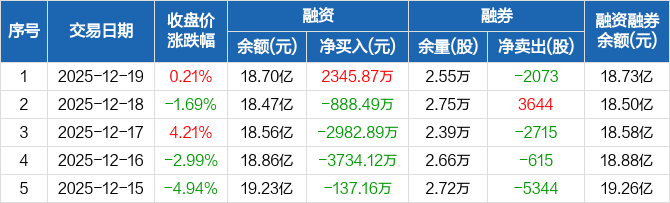 华虹公司:融资净买入2345.87万元,融资余额18.7亿元(12-19)