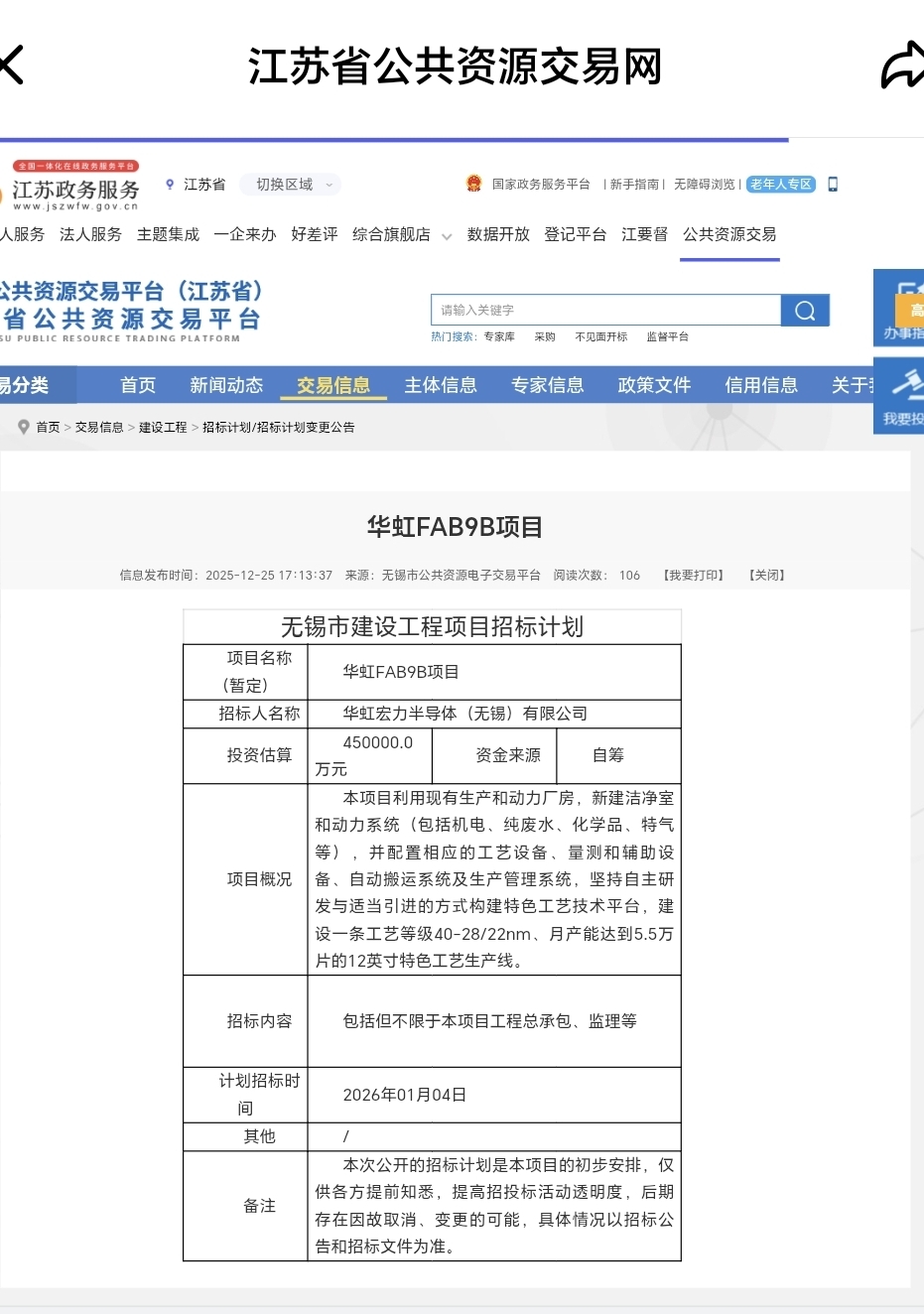华虹FAB9B扩产项目新增45亿项目没人关注吗?