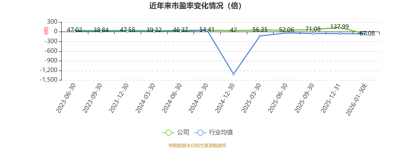 市盈率、市净率为负时,不显示当期分位数,会导致折线图中断。