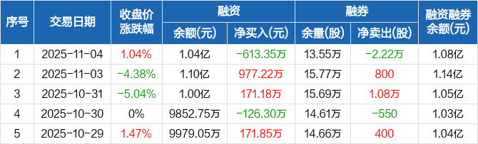 三一重能:融资净偿还613.35万元,融资余额1.04亿元(11-04)