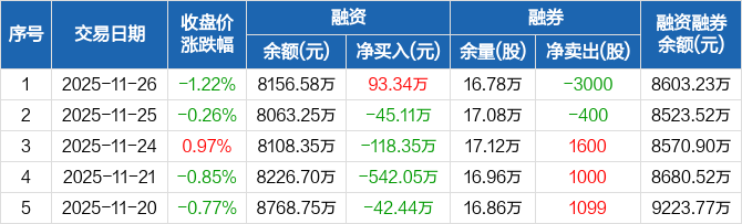 三一重能:融资净买入93.34万元,融资余额8156.58万元(11-26)