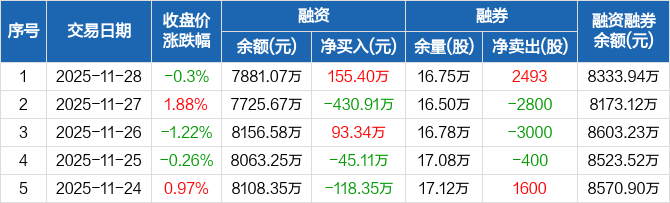 三一重能:融资净买入155.4万元,融资余额7881.07万元(11-28)