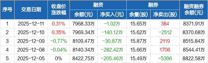三一重能:连续6日融资净偿还累计841.12万元(12-11)