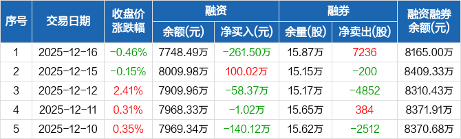 三一重能:融资净偿还261.5万元,融资余额7748.49万元(12-16)