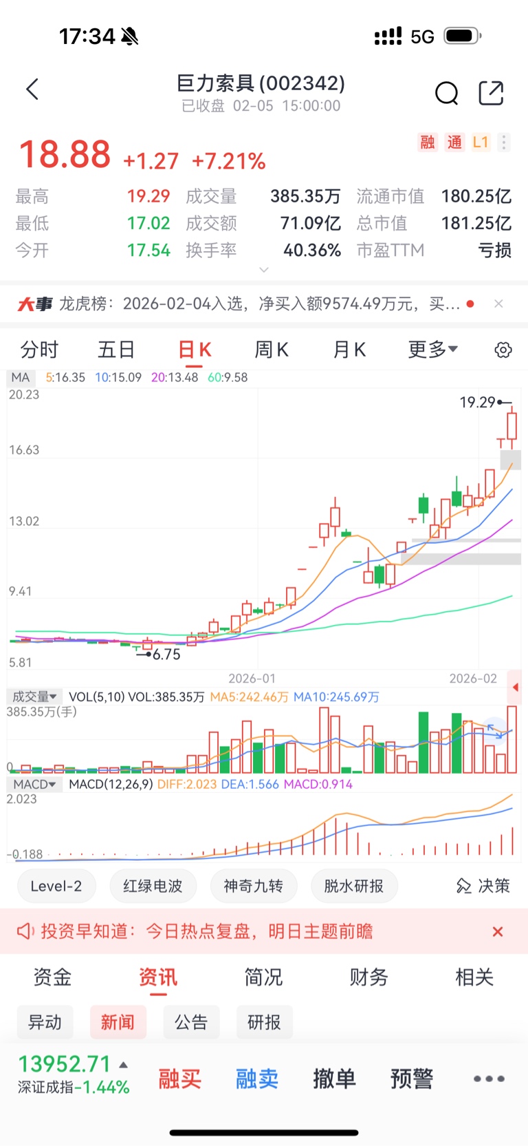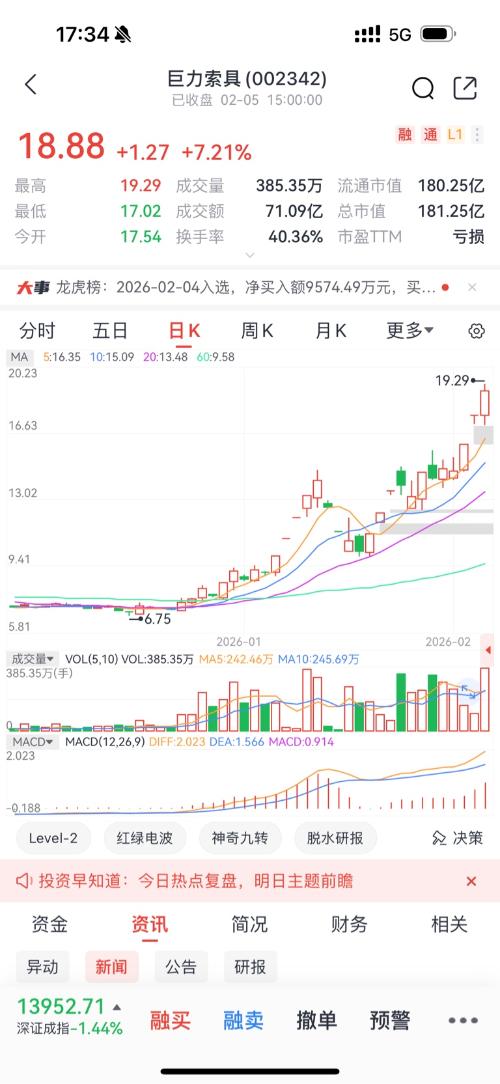 哥,你说的没错,确实我复盘发现很多翻倍票在结束漫长磨盘开启翻倍行情前都是有一个放量涨停的,也就是你说的摔杯为号,比如 这个巨力索具,好多都是