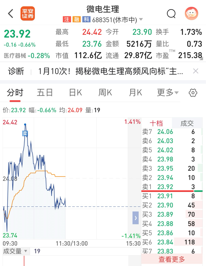$微电生理(SH688351)$ 成功逃顶。谢谢主力。