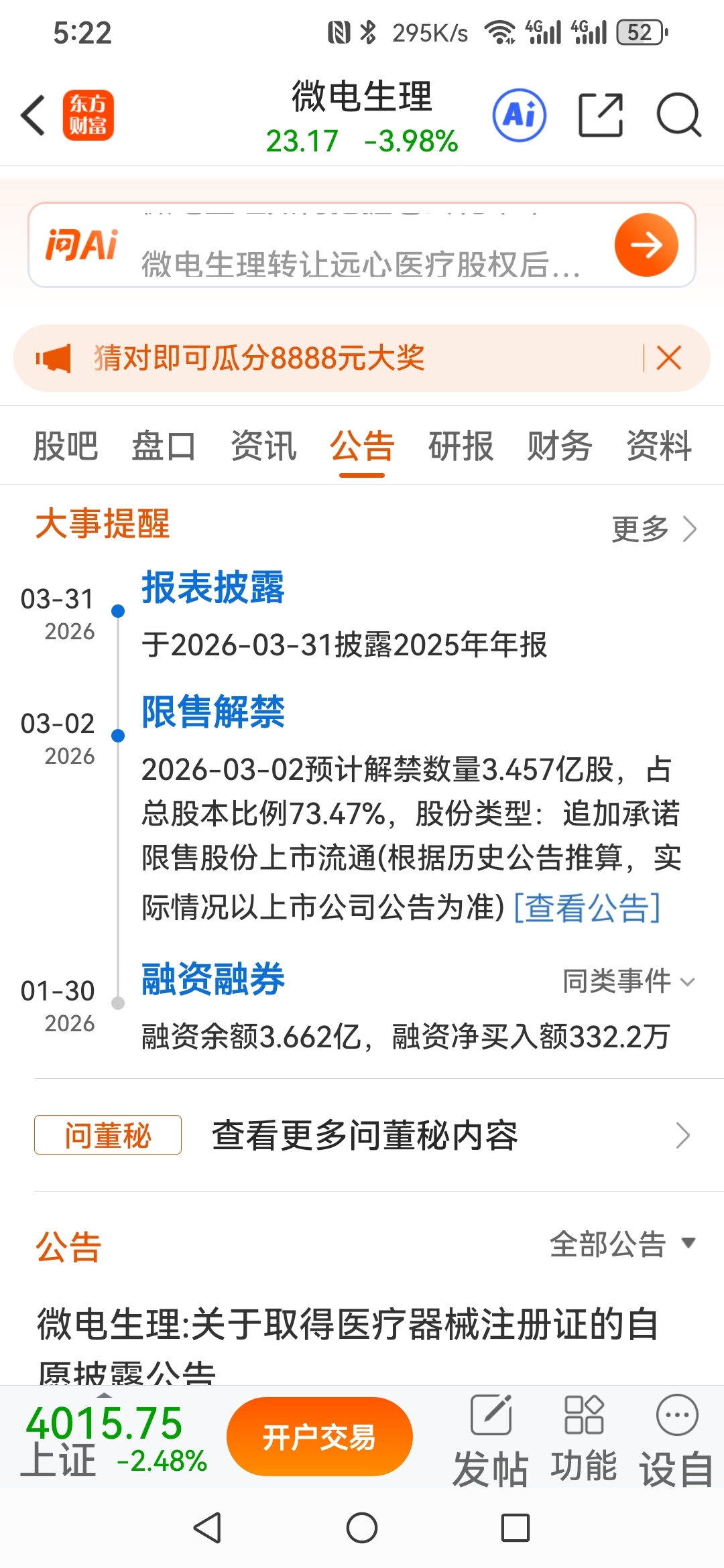 这段时间的下跌是因为3月2号的解禁股吗!