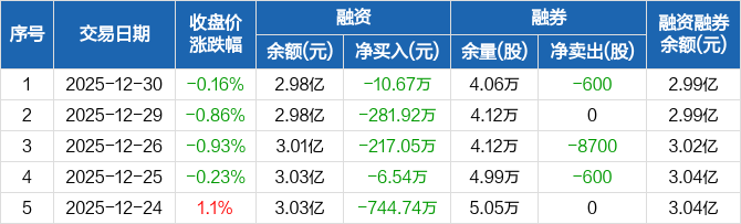 颀中科技:连续5日融资净偿还累计1260.92万元(12-30)