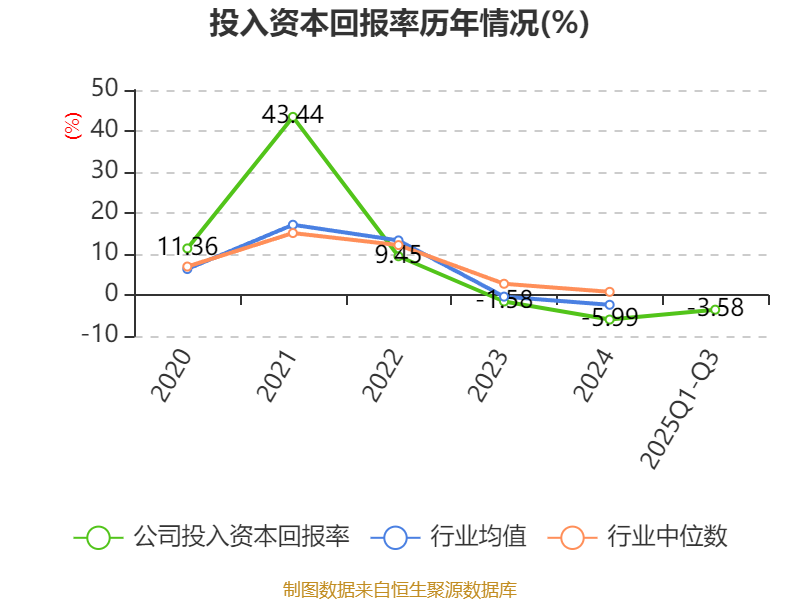 盈利能力方面, 2025年前三季度公司加权平均净资产收益率为-3.04%,同比上升0.57个百分点。公司2025年前三季度投入资本回报率为-3.58%,较上年同期上升0.86个百分点。